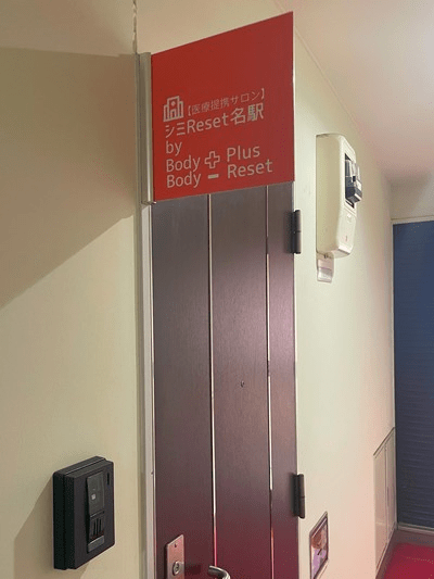 オレンジ色の「シミReset名駅」の看板が目印です。ご到着しましたらインターホンを押して呼び出してください。